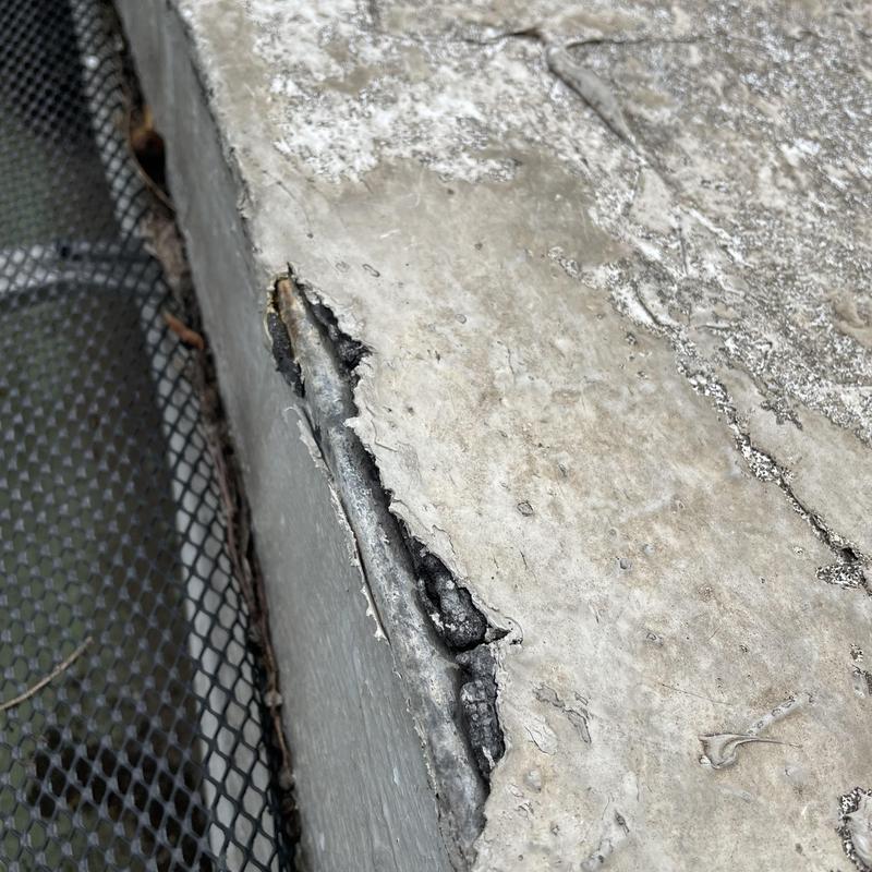 Bluebonnet Roof Co inspected a commercial roof in Austin, Texas. The team identified a puncture in the original roofing and a tear forming in the coating applied over it. This inspection addressed concerns about a known leak affecting the property.