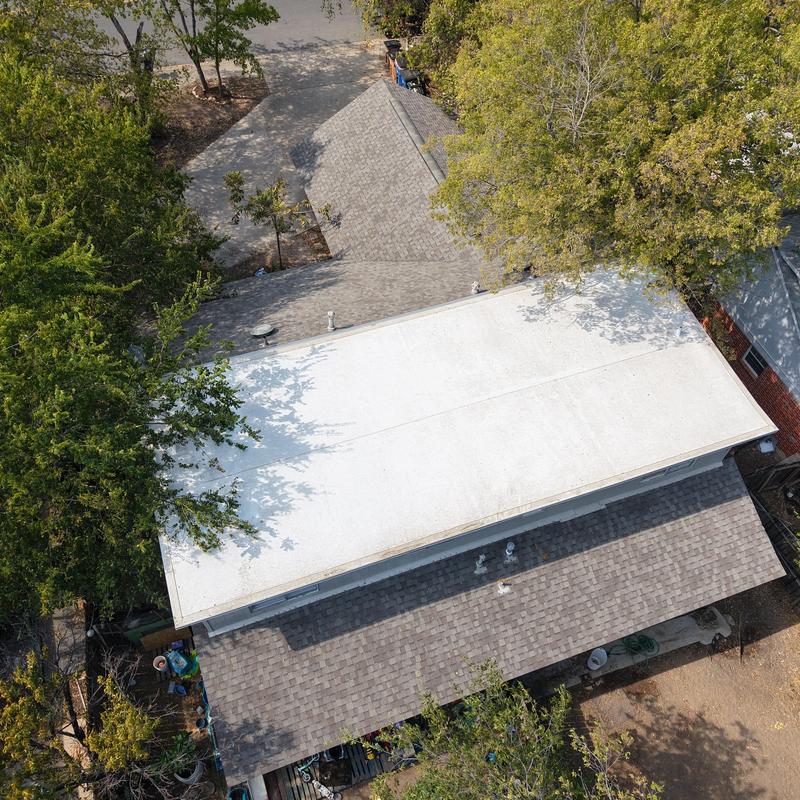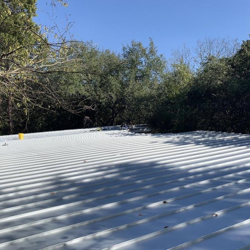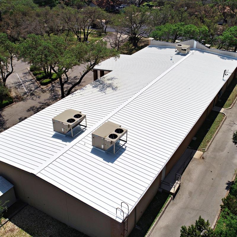 Bluebonnet Roof Co installed a silicone roof coating on a leaking standing seam metal roof in North Austin, Texas. The coating sealed all leaks and increased roof reflectivity, helping reduce indoor temperatures. This roofing system includes a 10-year manufacturer-backed warranty.