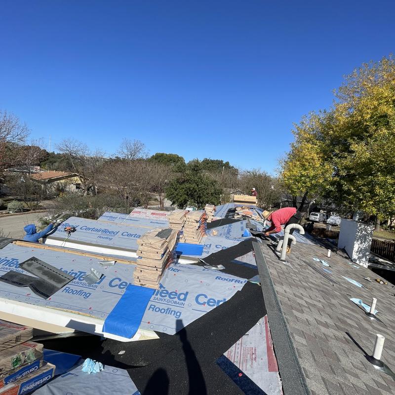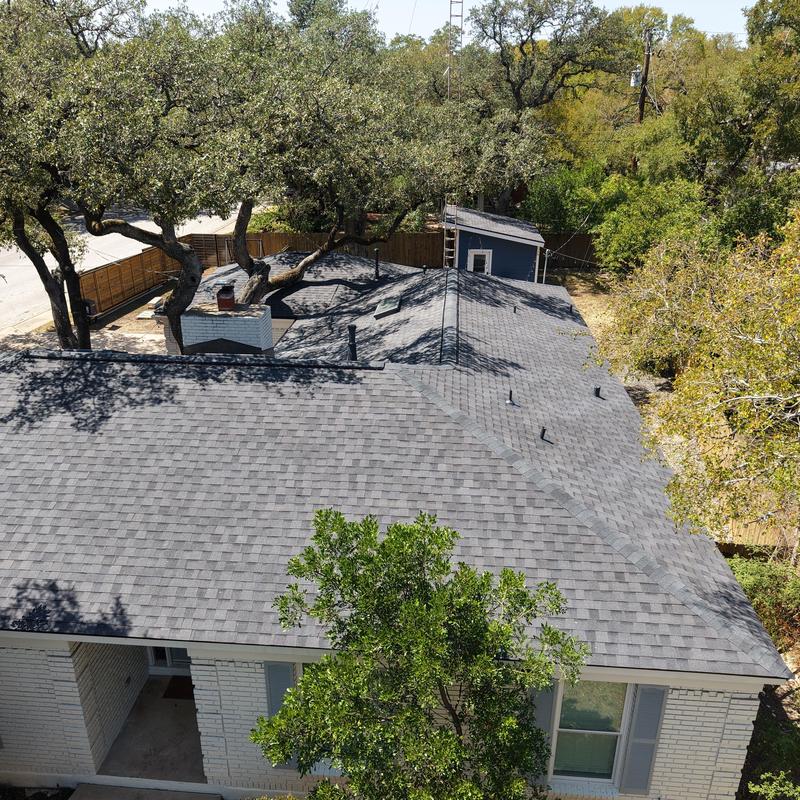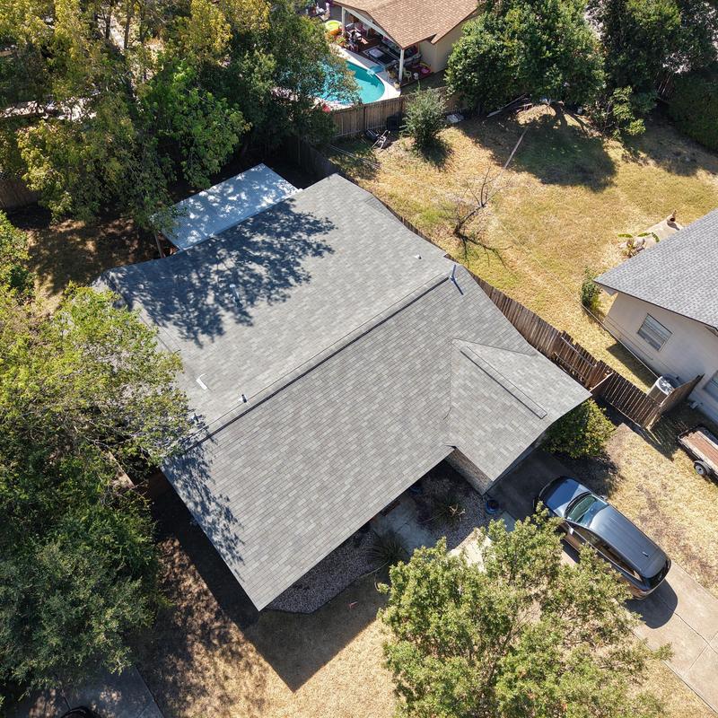Bluebonnet Roof Co removed and replaced a residential roof in Austin, Texas. The team installed Class 4 Impact Resistant shingles to improve durability and weather protection.