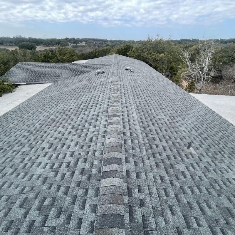 Bluebonnet Roof Co replaced a hail-damaged 3-tab roof in Austin, Texas. The team installed Class 4 shingles, synthetic underlayment, an ice and water shield, and a ridge vent system. The roof upgrade was completed under insurance coverage and built to meet enhanced weather protection standards.