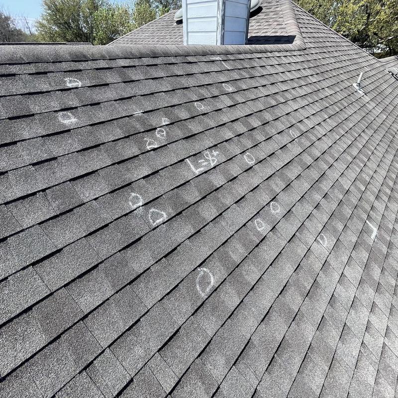 Bluebonnet Roof Co completed a roof inspection in Bee Cave, Texas, to assess hail damage on Owens Corning Duration shingles. The evaluation focused on identifying impact-related wear and verifying the condition of the roofing materials following the storm.