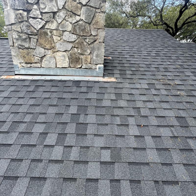 Bluebonnet Roof Co removed and replaced a CertainTeed Landmark HD shingle roof in Westlake, Austin, Texas. The team repaired chimney grout lines and upgraded roof flashing. Chimney repairs addressed cracks and deterioration in the existing stone and brick masonry, which are common in older homes.