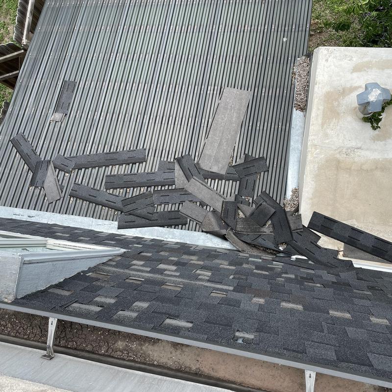 Bluebonnet Roof Co inspected and repaired a roof in Austin, Texas after tree damage caused by a windstorm. The team removed debris, assessed structural issues, and completed necessary repairs to ensure the roof's stability and function.
