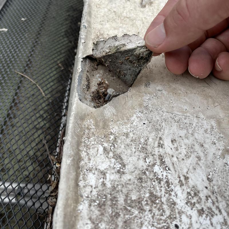 Bluebonnet Roof Co repaired roof damage in Bee Cave, Texas, caused by a fallen tree limb. The team removed broken shingles, applied a metal flashing plate, and installed new shingles to seal the opening. This repair avoided a full decking replacement by covering the small puncture with steel flashing.